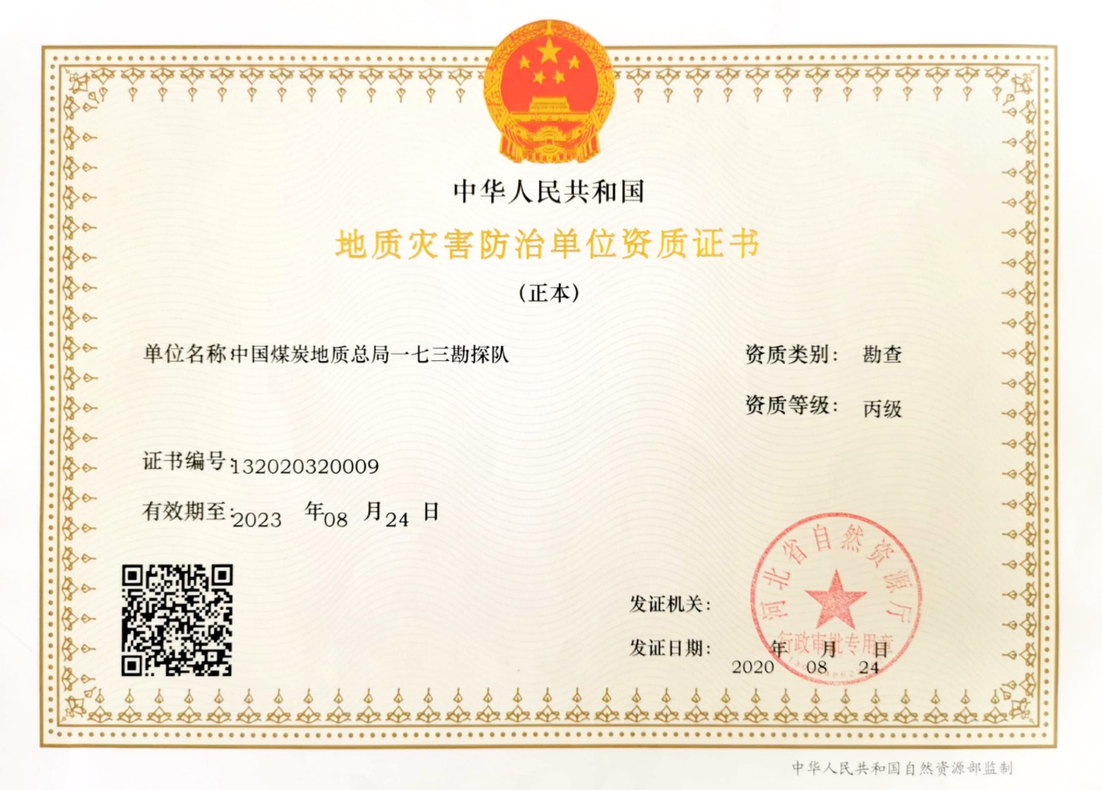 2020年以来,一七三队以更高的要求加强自身建设,努力优化产业格局,将地灾防治资质建设作为一项重要工作,在日常经营管理活动中注重提升技术实力、聚焦资质建设。经过上下一下精心组织和持续不断努力,取得了资质建设工作的新进展。